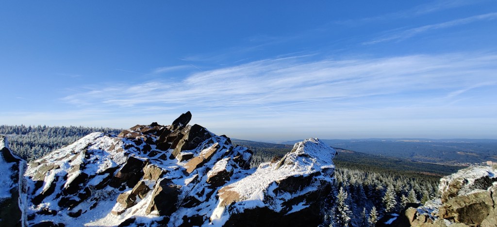 Vom 07. bis zum 09. Februar waren wir mit einer leider etwas schwachen Besetzung im Harz auf Winterfahrt. Erst fuhren wir mit dem Zug an den Harzrand, um von da aus weiter mit dem Bus nach Torfhaus zu gelangen. Obwohl wir eigentlich schon nicht mehr damit gerechnet hatten, lag ab einer Höhe von 800m tatsächlich 20cm hoch Schnee. Da wir erst gegen 19 Uhr abends ankamen, war es natürlich schon dunkel. Deshalb wanderten wir nur 5km aus dem Ort hinaus bis zur Wolfswarte, wo wir dann auf einer kleinen Lichtung zwischen den Fichten übernachteten. Zum Glück war fast Vollmond, weil das Zeltaufbauen und das Feuerholzsammeln ohne noch Mal um einiges schwerer gewesen wäre. Allerdings machte uns der Raureif einen Strich durch die Rechnung: Die Luftfeuchtigkeit war bei 100% und somit war überall ein Eisnebel, der sich selbst in den dichtesten Fichten an das, sonst immer trockene Holz setzte. Sobald das Holz durch die Wärme eines Streichholzes auftaute, war es somit klitschnass. So krochen wir dann nur mit Gummibärchen gestärkt in unsere Schlafsäcke.